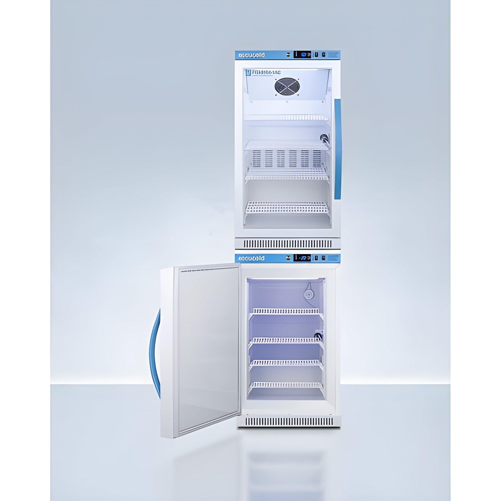 Accucold ARS15PV-CRT Controlled Room Temperature CabinetThe ARS15PV-CRT is a 15 cu.ft. upright unit designed for storing medication at a stable room temperature. It features a microprocessor temperature controller with an adjustable range from 68º to 77ºF, ensuring precise temperature management. The unit is equipped with adjustable cycle defrost to prevent temperature fluctuations and internal forced air cooling for consistent stability. Seven adjustable plastic-coated wire shelves offer ample storage space, with LED internal lighting for better visibility. Additional features include an audible and visual temperature alarm, power failure alert, and a hospital-grade cord with a green dot plug for safety. The antimicrobial handle helps reduce germs, and the self-closing door adds convenience. This unit's white powder-coated metal interior enhances durability and improves temperature retention.