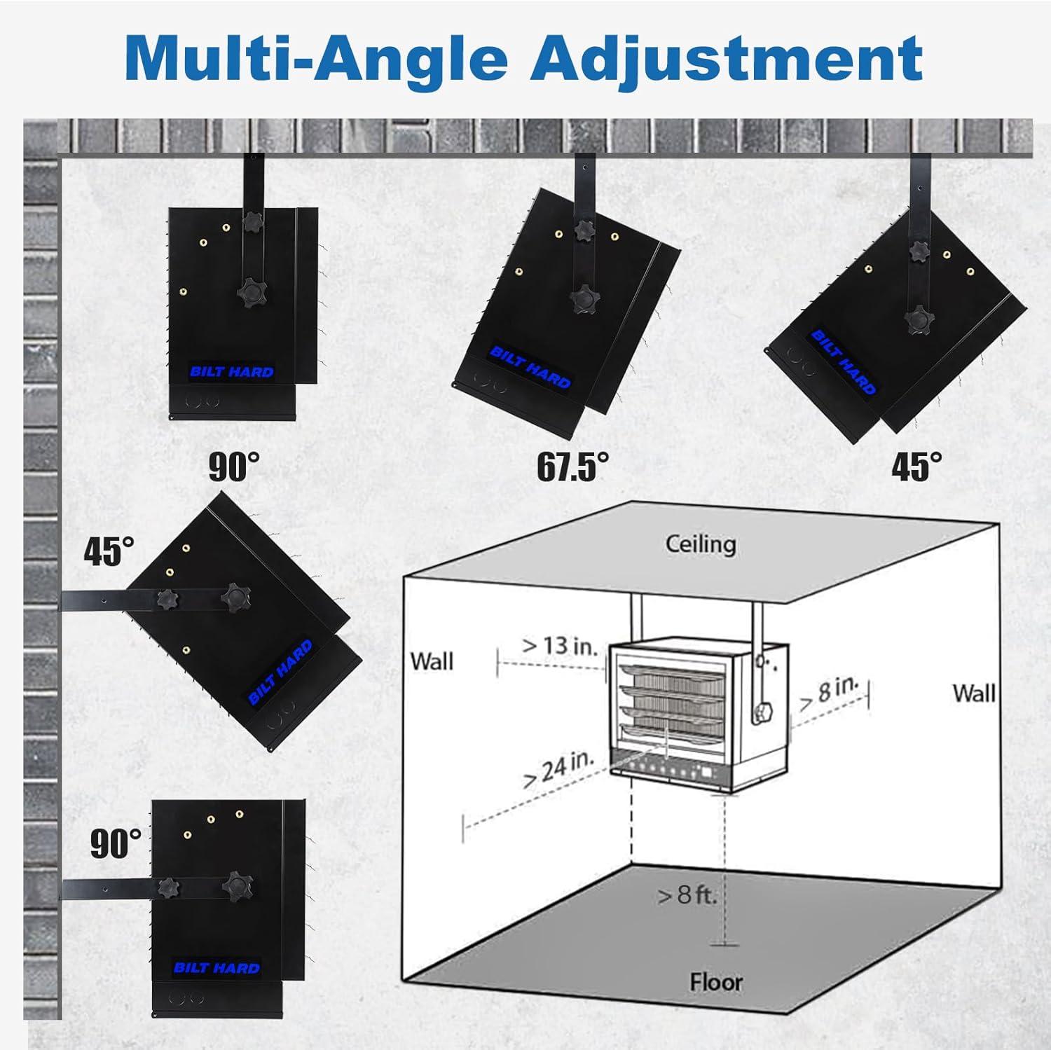 Customize your heat distribution with adjustable louvers and an adjustable angle design. You can direct warm air precisely where it’s needed, making this electric heater ideal for various settings like workshops, garages, warehouses, or parking lots.