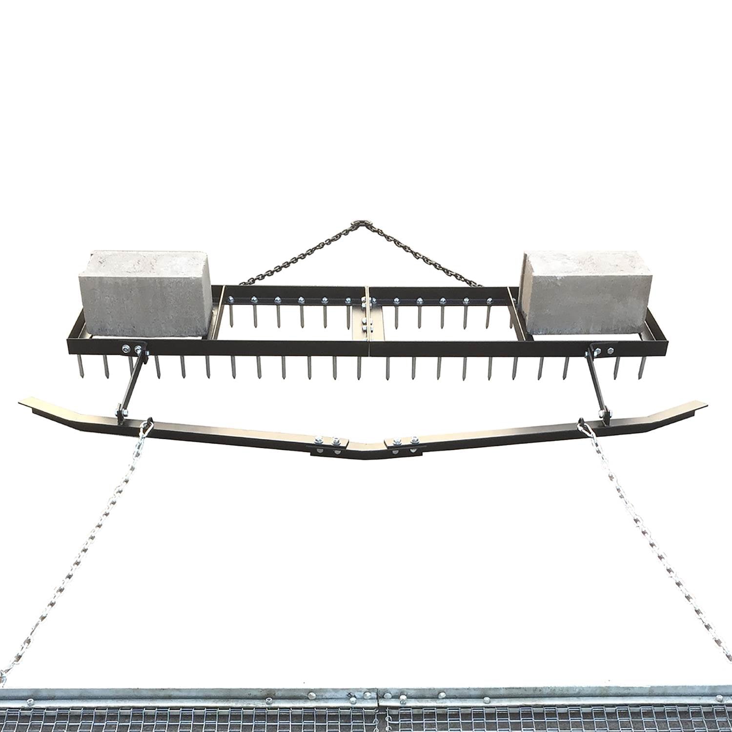 Fed up with uneven terrain? Bid farewell to it with the Yard Tuff 6-Foot Spike Drag Leveling Bar and Drag Mat. This versatile tool levels driveways, yards, parking lots, baseball diamonds, food plots, and more. Easily attach it to ATVs, UTVs, or utility tractors for a 6-foot wide leveling surface, making ground maintenance a breeze